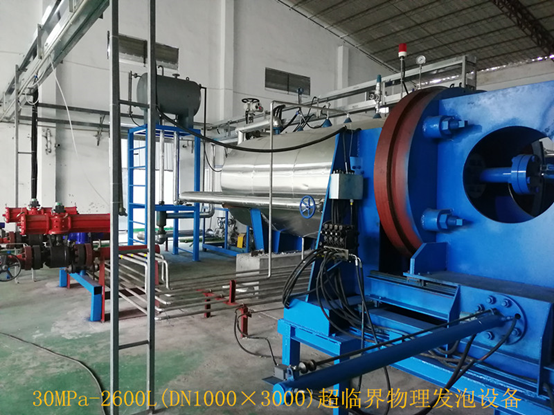 超臨界發(fā)泡EVA工藝就是將注塑成型的EVA中底冷胚,放置在高壓反應(yīng)釜中,通過與超臨界氣體的一系列升溫升壓、降溫降壓反應(yīng),使泡孔逐漸成核,實(shí)現(xiàn)EVA發(fā)泡。